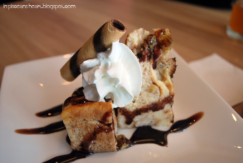 | Bread Butter Pudding (RM 6.90) Served with Vanilla Sauce and Chocolate Waffle |