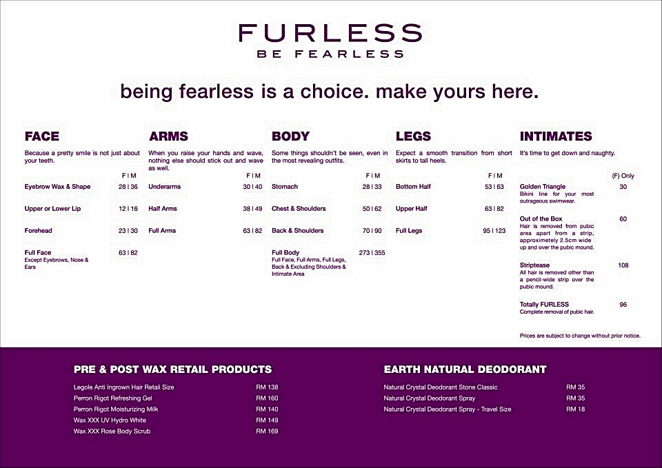 They are also running a promotion currently: 3xTotally FURLESS sessions at only RM 268 instead of RM 288!