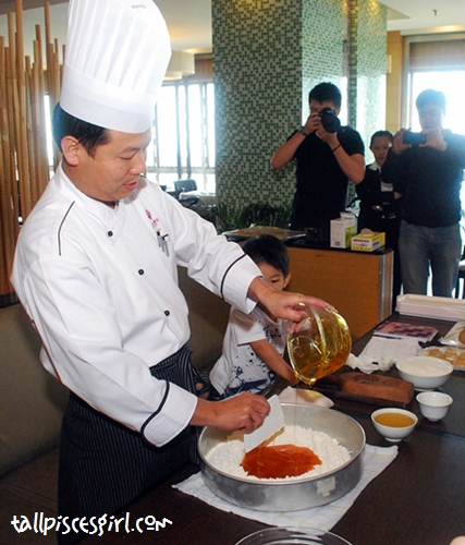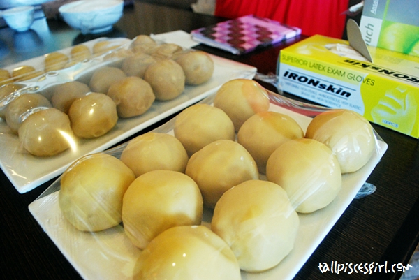OK, I’m trying to wrap the lotus paste filling with the skin