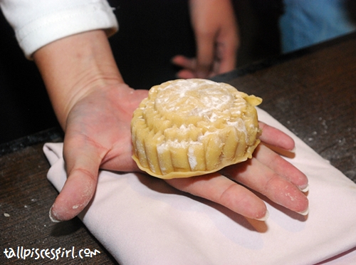 Everyone was anticipating the Durian Lotus Paste mooncake! Finally satisfied when we’ve got to taste it =) The paste was made using real durian paste mixed with lotus paste and then processed before they put it into the mooncakes. It tasted like Durian Dodol that you can get in Malacca but this comes with crunchy kua chi! Best paired with Tie Guan Yin.