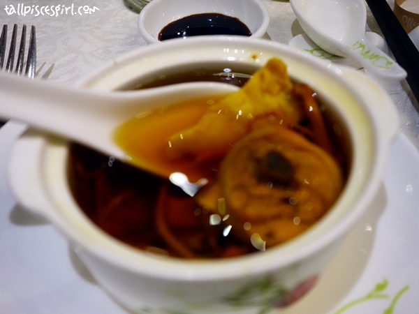The first dish that I got to taste was Double Boiled Cordyceps Flower with Top Shell & Fish Maw. Upon hearing the name, I knew it is a very healthy and nutritious soup, especially for the ladies because Fish Maw is known to supply collagen to our skin. The function of this soup as a whole is to improve skin complexion, nourishes our Yin and cleanses our kidney.