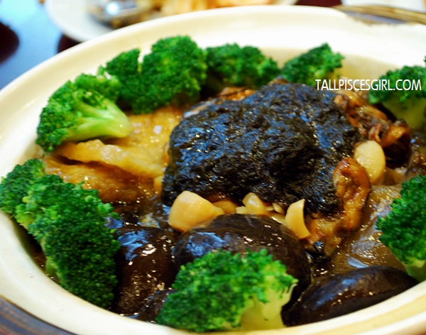 Another seafood dish was presented upon us but this time, with some greens! All I can say about Cheng Ho Braised Mixed Dried Seafood with Claypot Sadri is – it’s a pot of treasure! Expect to find black moss, scallops, sea cucumbers, dried oysters, fish maw, huge mushrooms and brocolli in a thick, yummy sauce!