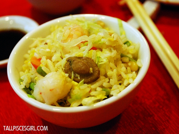 The cute mushroom in my bowl of Abalone Seafood Fried Rice with Pine Seed
