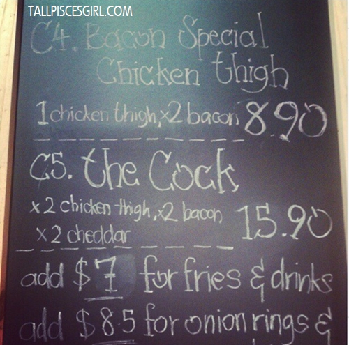 While checking out the menu, we discovered this item: The Cock! LMAO!