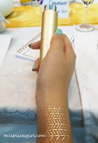 In conjunction with its 2nd anniversary, The Face Inc has launched the Limited Edition The Face Inc Gold Primer Mist together with product ambassador, Tong Bing Yu at Pietro’s Italian Restaurant in Damansara Heights during the celebration event.The Face Inc Product Ambassador, Tong Bing Yu The Face Inc Primer Mist has become a necessity in every women’s life since its launch last year. In just 15 seconds, this lightweight hydration face mist is able to tighten skin, making it smoother and provide up to 15 times instant hydration boost. Made using botanical extracts and collagen, it is perfect as primer and refresher to keep your skin moisturized all day. As the packaging is conveniently sleek, you can slip it into your bag and use it whenever you need an instant boost.The Face Inc Primer Mist – Lightweight, provides instant hydration and lifting effect Due to the popularity of this award-winning product, The Face Inc came up with something special for their 2nd Anniversary celebration – a limited edition GOLD cased primer mist. A beautiful and bold addition to your skincare kit.The Face Inc Gold Primer Mist Launch with Charmaine and BowieGold tattoo X Limited Edition Gold Primer Mist For an in-depth review, click here: The Face Inc Primer Mist ReviewAnother amazing product: The Face Inc Eye Lift With the set up of an intelligent online skincare consultation system called “Dr. Rei”, we can now precisely identify our skin concerns and get treatment products prescribed to combat our skin problems. They have not only made treatment products more accessible to consumers but has also made it more convenient to purchase the products.Celebrities that also love The Face Inc products The Face Inc Primer Mist retails at RM 178 for one spray bottle and two refills (3x15ml). The Face Inc products are available exclusively at www.thefaceinc.com and selected SASA stores nationwide.Beautiful gold calligraphy on my new notebook!