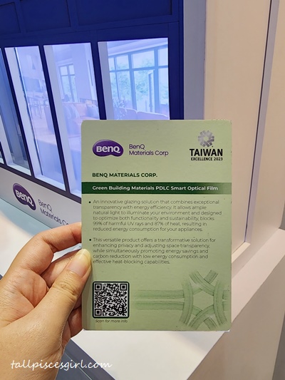 Taiwan Excellence represents the epitome of innovation in Taiwanese industries, with award-winning products that demonstrate innovative value in R&D, design, quality, and marketing. Some of the featured products include Innolux’s “Smart Dimming LC Window,” which automatically adjusts lighting to significantly reduce building energy consumption; San Jeou Building Material’s newly developed “Auto Flood Barrier Shutter”, which combines anti-theft and waterproof functions; and BenQ Materials’ “PDLC Smart Optical Film,” which blocks heat and ultraviolet light to combat urban heat waves.