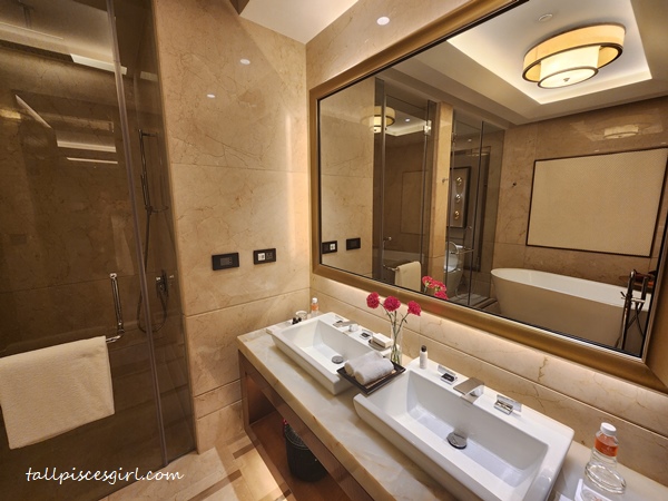 The bed was so comfy, I just wanted to sink into the plush bedding, and there was a cozy little workspace where I could sit with my laptop if needed. The bathroom? Let’s just say the bathtub became my best friend after a day of exploring. It was the perfect place to relax, and I felt pampered by all the little details, from the complimentary Epsom salt to the rainfall shower. I must specially highlight the extremely comfortable bathrobe, which feels like wrapping myself in a soft, warm cloud as well!