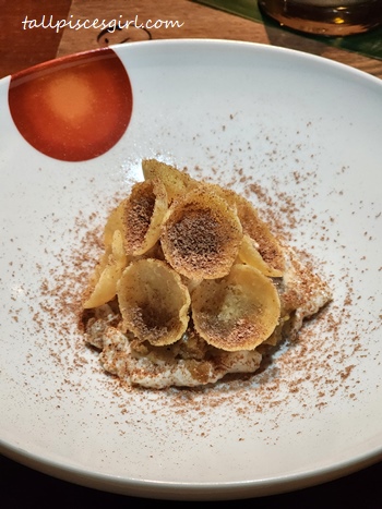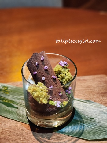 A visual masterpiece that looks like it belongs in a fantasy forest. Featuring fresh ginger from a little farm on the hill, the dessert is decorated with edible flowers and a chocolate sculpture resembling a tree bark. It’s fragrant, warming, and almost too pretty to eat.